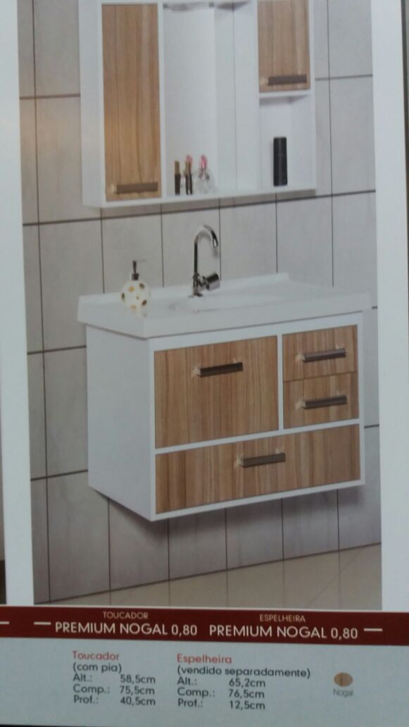 Gabinete em MDF com Espelheira em MDF na cor Branco e Nogal