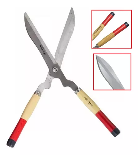 A tesoura possui uma lâmina de aço resistente, garantindo cortes precisos e limpos. Seu tipo de corte reto permite um trabalho mais rápido e eficiente, facilitando a poda de gramas e cercas vivas de forma prática e sem esforço.